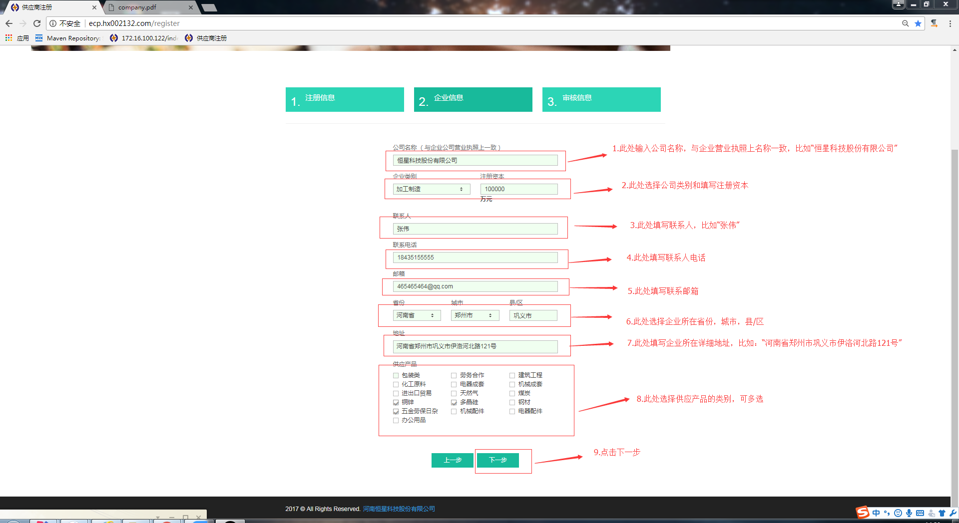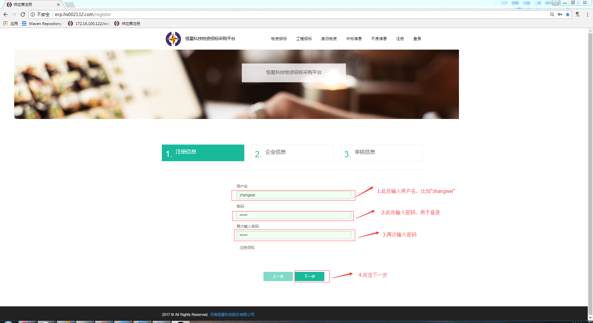 按照上图按步骤填写相应信息,填写完成点击下一步。