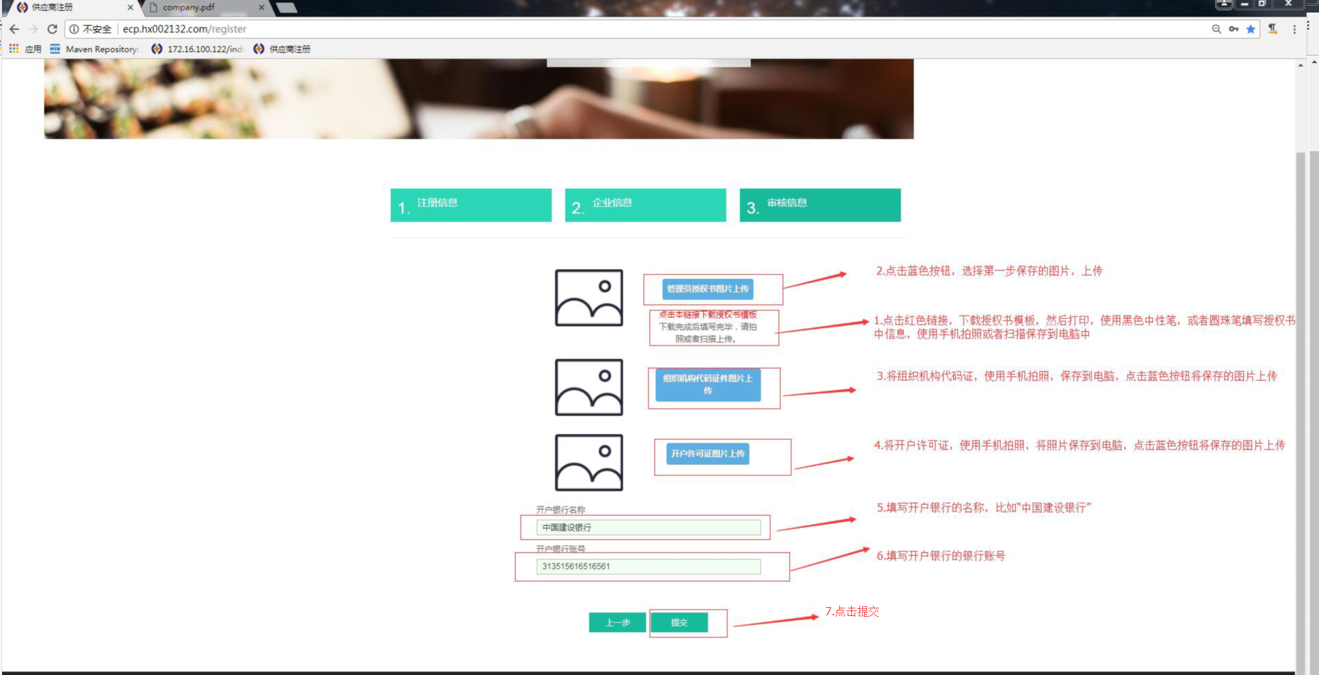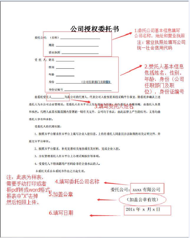 h按照如图3所示步骤完成填写点击提交,此外公司授权书规范在下图。